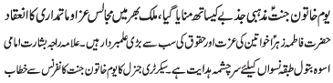 | ISLAMABAD, March 26: Youme Khatoon e Jannat (SA) was observed with great religious zeal and reverence; Majalis e Aza held and Matamdari was performed throughout the country | ||
