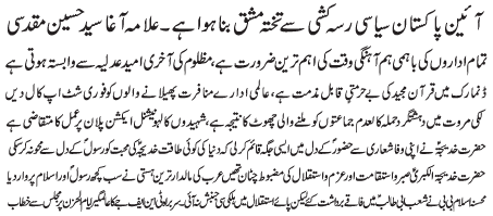 RAWALPINDI, March 31: The constitution of Pakistan is subject to a political tug of war - Agha Muqadasi |