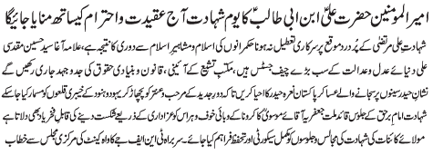 RAWALPINDI, March 21: The martyrdom of Imam Ali Ibne Abi Talib (AS) will be commemorated today with great religious zeal and reverence |