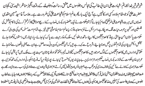 | RAWALPINDI, March 31: The Tehreek Nafaz e Fiqh e Jafariya announced the observation of the "Alamgheer Youm e Inhadame Janatal Baqi on 8 Shawal | ||