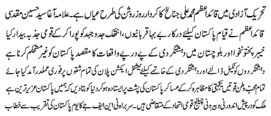 | RAWALPINDI, March 23: The role of the Quaid e Azam Mohammad Ali Jinnah in the freedom movement is not hidden from any one - Hussain Muqadasi | ||