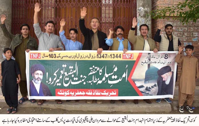 RAWALPINDI, March 28: On the call of the Tehreek Nafaz e Fiqh e Jaffariya, peaceful protests will be held throughout the country on the occasion of the "Youme Inhadam e Jannat al Baqi" |
