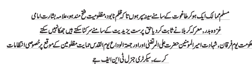 | RAWALPINDI, March 27: Schedule of countrywide peaceful protests on the occasion of the "Alamgheer Youm e Inhadame Jannat Al Baqi" has been announced | ||