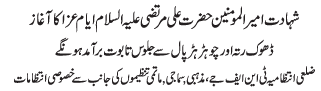 | RAWALPINDI, March 9: The Ayyam e Aza to commemorate the Shahadat of Imam Ali (AS) Begin | ||