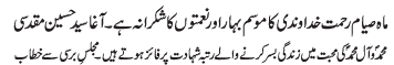 RAWALPINDI, March 18: The month of fasting is a time for receiving bounties of Allah (SWT) - Hussain Muqadasi |