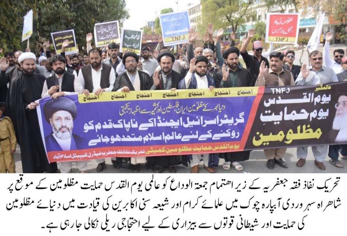 RAWALPINDI, March 4: The Muslim Ummah casts off the cloak of prejudice and stands in support of the oppressed - Hussain Muqadasi |